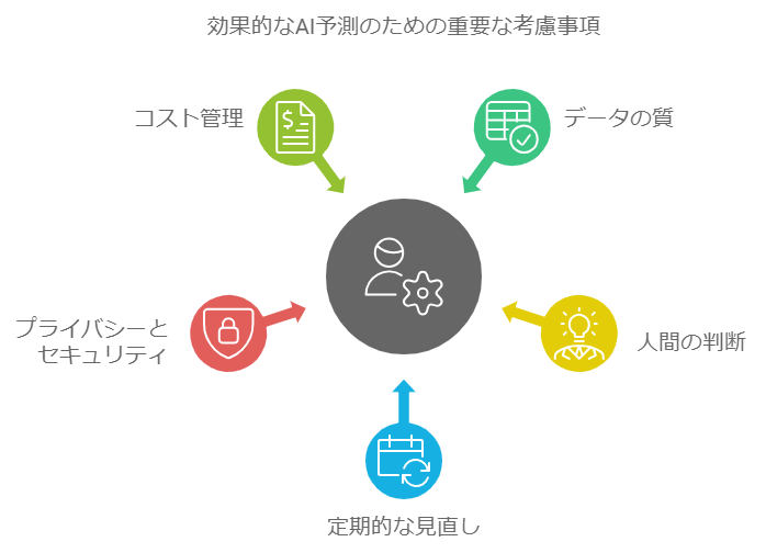 ・AIの予測結果を鵜呑みにせず、人間の経験や直感と併せて判断することが大切です。 - 定期的な見直し: