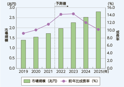 日本のデータセンター事業の市場規模(売上高)は現在増加している。2022年に2兆275億円となり、その後2026年には市場規模は3兆2,083億円となると予測されている。