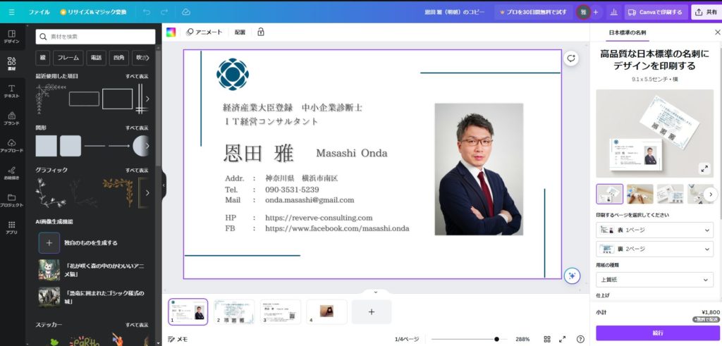 しかし、ここまで簡単に且つ自由に名刺を作成できることが分かったため、今後さらにブラッシュアップして度々アップグレードをしたいと思うようになった。