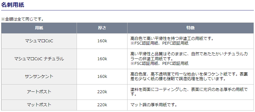 なお、その際名刺の用紙も指定できるが、意外と用紙で与える印象は変わる。個人的には、厚手でマットな感じ(光沢ではなく)が良かった。実は3月にも一度発注しており、その際はマットポストを指定したが、思ったよりも光沢が強かったため、今回はサンサンケントを指定した。なお、実物の画像の比較サンプルがHP上に無く、いろいろとネットを漁って一番よさそうなサンサンケントを選んだわけだが、結果としては満足できるものだった。