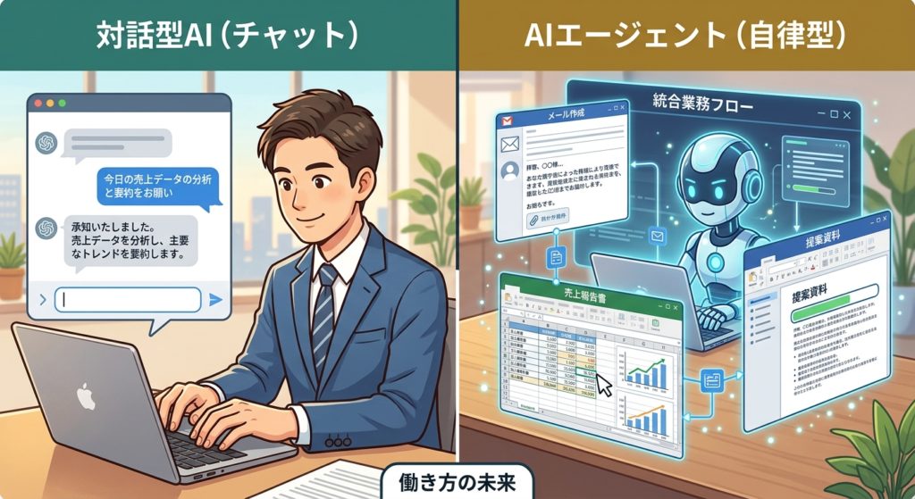 ① 対話型AIとの決定的な違い──「リアクション型」から「自律型」へ
